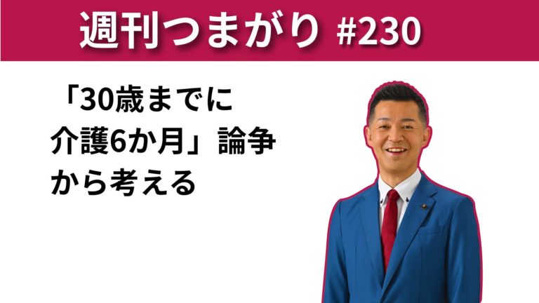 【週刊つまがり動画配信 #230】「30歳までに介護6か月」論争から考える